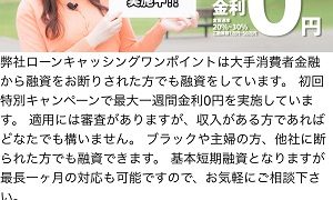 ローンキャッシングワンポイントは闇金融業者です、申し込みしてもお金を借りれる事はありません。関わらないように注意してください。