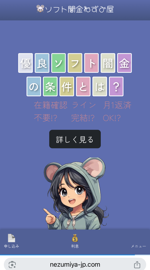 正規登録している貸金業サイトに見えますが、金融庁に未登録で融資業務を行えない違法サイトです。
