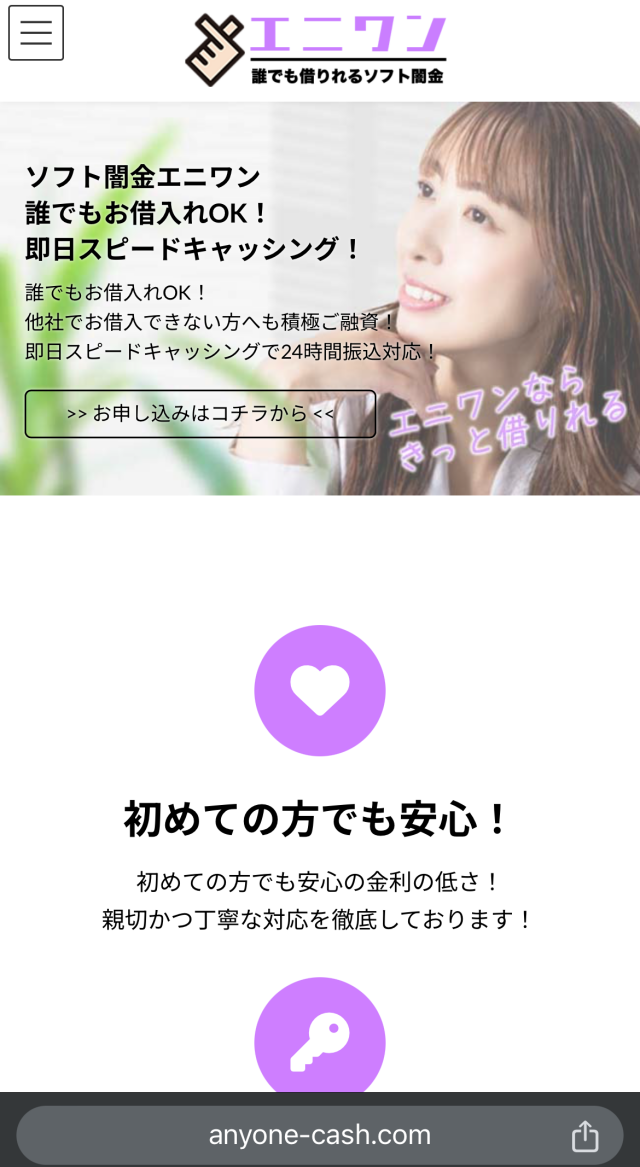 正規登録している貸金業サイトに見えますが、金融庁に未登録で融資業務を行えない違法サイトです。