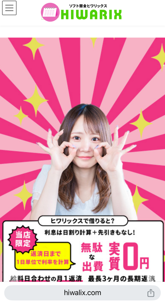 最短10秒でイマすぐわかる!初めてでも安心感をイマスグ!いつでも先引き利息0円スマホ完結で来店不要などと大手消費者金融より簡単に貸してくれそうなことが書かれていますが、貸してくれるどころが、違法金利での高利貸しやスマホやキャッシュカード、銀行口座を搾取する詐欺の被害に巻き込まれるだけです。